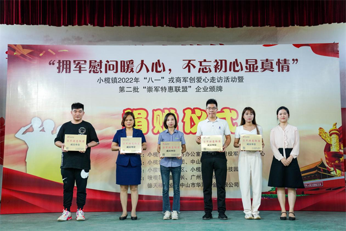 7月24日,小欖鎮(zhèn)舉行“擁軍慰問(wèn)暖人心,不忘初心顯真情”——2022年“八一”愛(ài)心走訪活動(dòng)啟動(dòng)暨第二批“崇軍特惠聯(lián)盟”企業(yè)頒牌儀式。該鎮(zhèn)副鎮(zhèn)長(zhǎng)鄧泳標(biāo)、市退役軍人服務(wù)中心副主任高亞男及鎮(zhèn)公共服務(wù)辦、退役軍人服務(wù)中心、高沙社區(qū)、中山好人工作室相關(guān)負(fù)責(zé)人,小欖愛(ài)心助學(xué)團(tuán)志愿者、愛(ài)心企業(yè)及第二批市“崇軍特惠聯(lián)盟”企業(yè)的代表以及部分優(yōu)秀退役軍人代表近100人參加了活動(dòng)。