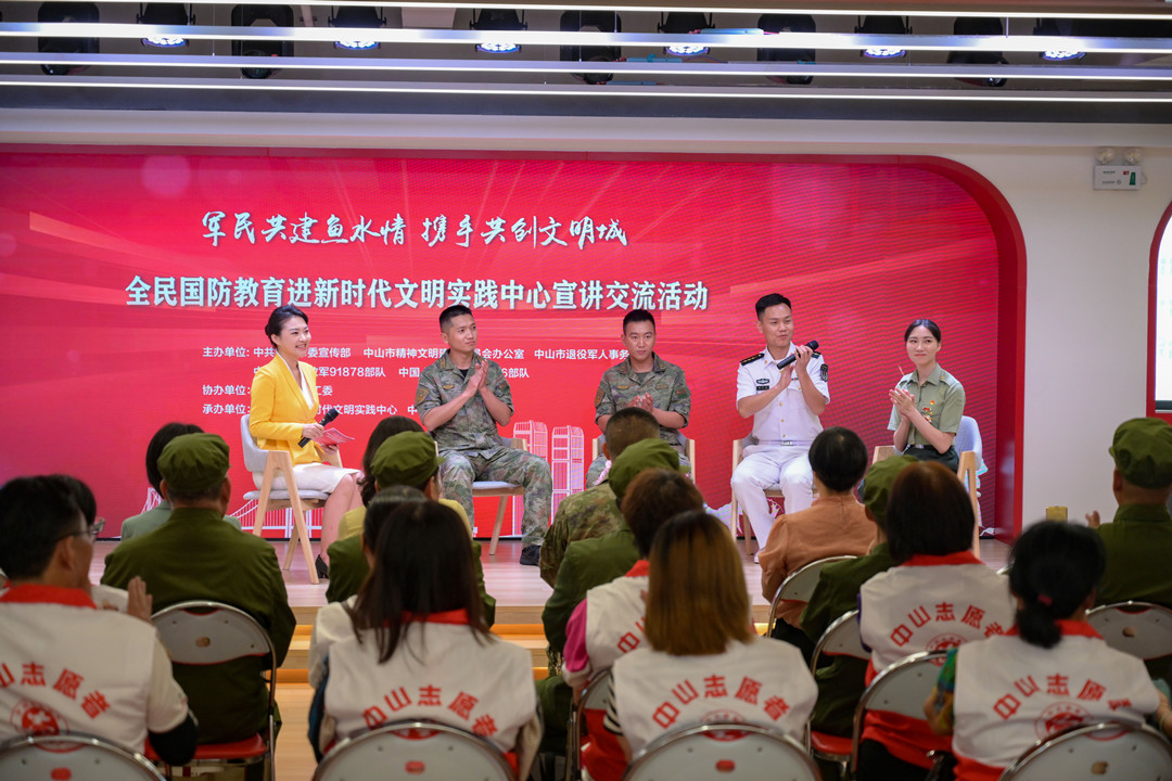 5月18日下午,全民國防教育進(jìn)新時(shí)代文明實(shí)踐中心宣講交流活動(dòng)在中山市民眾街道新時(shí)代文明實(shí)踐中心舉行,退役軍人代表、基層群眾、村干部以及受邀出席的中國人民解放軍91878部隊(duì)、69316部隊(duì)官兵代表等200余人參加活動(dòng)。  活動(dòng)現(xiàn)場。記者 易承樂 攝