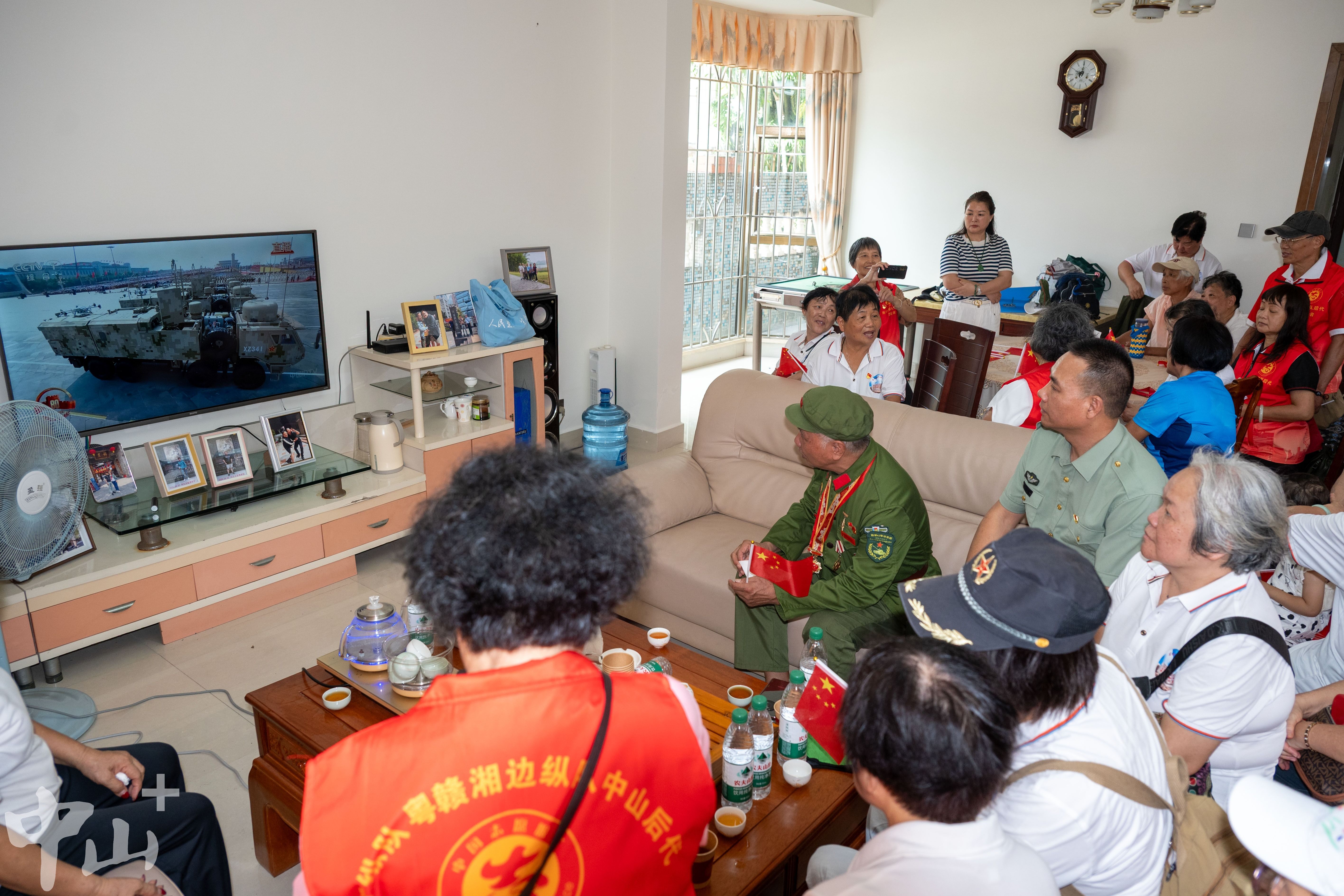 9月3日上午,廣東人民抗日游擊隊東江縱隊、粵贛湘邊縱隊中山后代和功勛老兵齊聚抗戰(zhàn)時期“廣東省革命老區(qū)村莊”——南朗街道白企村,共同觀看紀念中國人民抗日戰(zhàn)爭暨世界反法西斯戰(zhàn)爭勝利80周年大會直播盛況。他們紛紛表示,看到強大的祖國越來越繁榮,非常激動,也非常自豪。 9月3日上午,東江縱隊、粵贛湘邊縱隊中山后代和功勛老兵齊聚在一起,觀看閱兵盛典。見習(xí)記者 張景天 攝