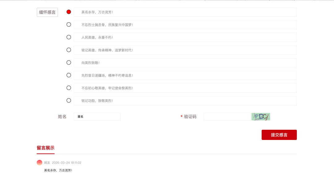 點(diǎn)擊首頁“歡迎您為烈士獻(xiàn)花”飄窗
