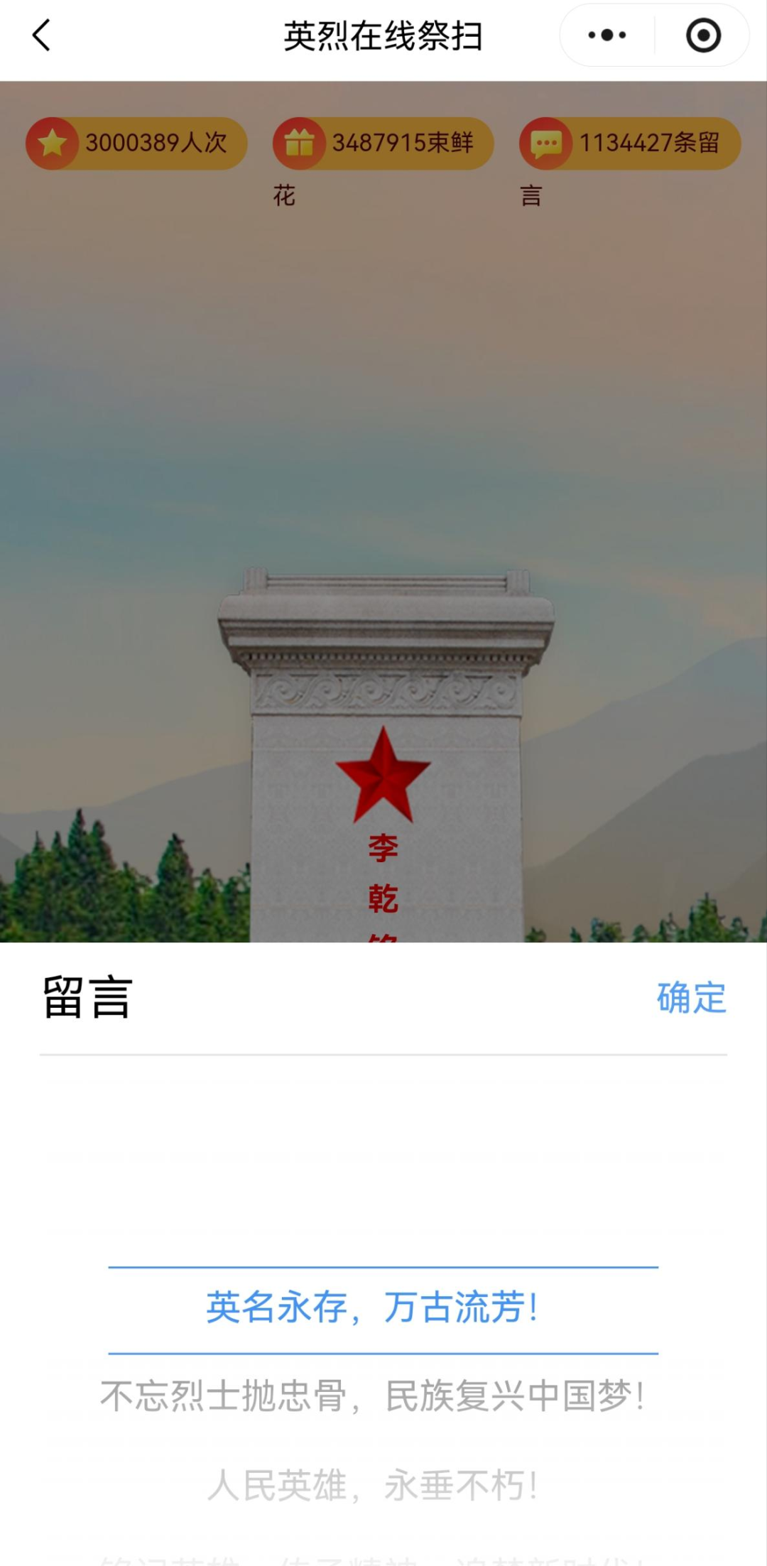 4、烈士名錄中選擇其中一烈士,點(diǎn)擊留言。