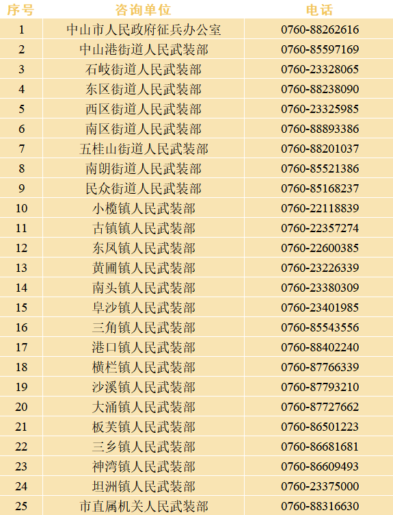 2025年全國(guó)征兵(男兵)應(yīng)征報(bào)名已于12月1日開(kāi)始。記者從中山市人民政府征兵辦公室獲悉,即日起,符合條件的青年可通過(guò)官方渠道報(bào)名參軍,對(duì)于征兵政策和流程存有疑問(wèn)的市民,可通過(guò)撥打各鎮(zhèn)街征兵咨詢(xún)電話獲得詳細(xì)解答。 應(yīng)征報(bào)名(男兵) 應(yīng)征報(bào)名提示:男兵報(bào)名前須完成兵役登記 全國(guó)征兵(男兵)2025年應(yīng)征報(bào)名時(shí)間 上半年應(yīng)征報(bào)名:2024年12月1日至2025年2月10日24時(shí) 下半年應(yīng)征報(bào)名:2024年12月1日至2025年8月10日24時(shí) 男兵應(yīng)征報(bào)名對(duì)象 高中(含中專(zhuān)、職高、技校)畢業(yè)生及以上文化程度的青年(含高校在校生),年滿18至22周歲(2003年1月1日——2007年12月31日出生);普通高等學(xué)校本專(zhuān)科畢業(yè)生、上半年符合畢業(yè)條件的畢業(yè)班學(xué)生,年滿18至24周歲;研究生畢業(yè)生及在校生放寬至26周歲;初中畢業(yè)文化程度男青年,年滿18至20周歲。 應(yīng)征報(bào)名(女兵) 全國(guó)征兵(女兵)2025年應(yīng)征報(bào)名時(shí)間 上半年應(yīng)征報(bào)名:2025年1月1日至2025年2月10日24時(shí) 下半年應(yīng)征報(bào)名:2025年7月1日至2025年8月10日24時(shí) 女兵應(yīng)征報(bào)名對(duì)象 上半年應(yīng)征報(bào)名:普通高等學(xué)校和科研機(jī)構(gòu)全日制應(yīng)屆畢業(yè)生及在校生,年滿18至22周歲(2003年1月1日——2007年12月31日出生),全日制研究生應(yīng)屆畢業(yè)生及在校生放寬至26周歲;2024年普通高等學(xué)校全日制本專(zhuān)科應(yīng)屆畢業(yè)生可以報(bào)名參加2025年上半年女兵征集,年齡放寬至23周歲。 下半年應(yīng)征報(bào)名:普通高中應(yīng)屆畢業(yè)生、普通高等學(xué)校和科研機(jī)構(gòu)全日制應(yīng)屆畢業(yè)生及在校生,年滿18至22周歲(2003年1月1日——2007年12月31日出生),全日制研究生應(yīng)屆畢業(yè)生及在校生放寬至26周歲。 報(bào)名方式 報(bào)名方式征兵報(bào)名官方網(wǎng)站:全國(guó)征兵網(wǎng) www.gfbzb.gov.cn 軍隊(duì)媒體移動(dòng)旗艦客戶端:中國(guó)軍號(hào)App 中山各鎮(zhèn)街征兵咨詢(xún)電話