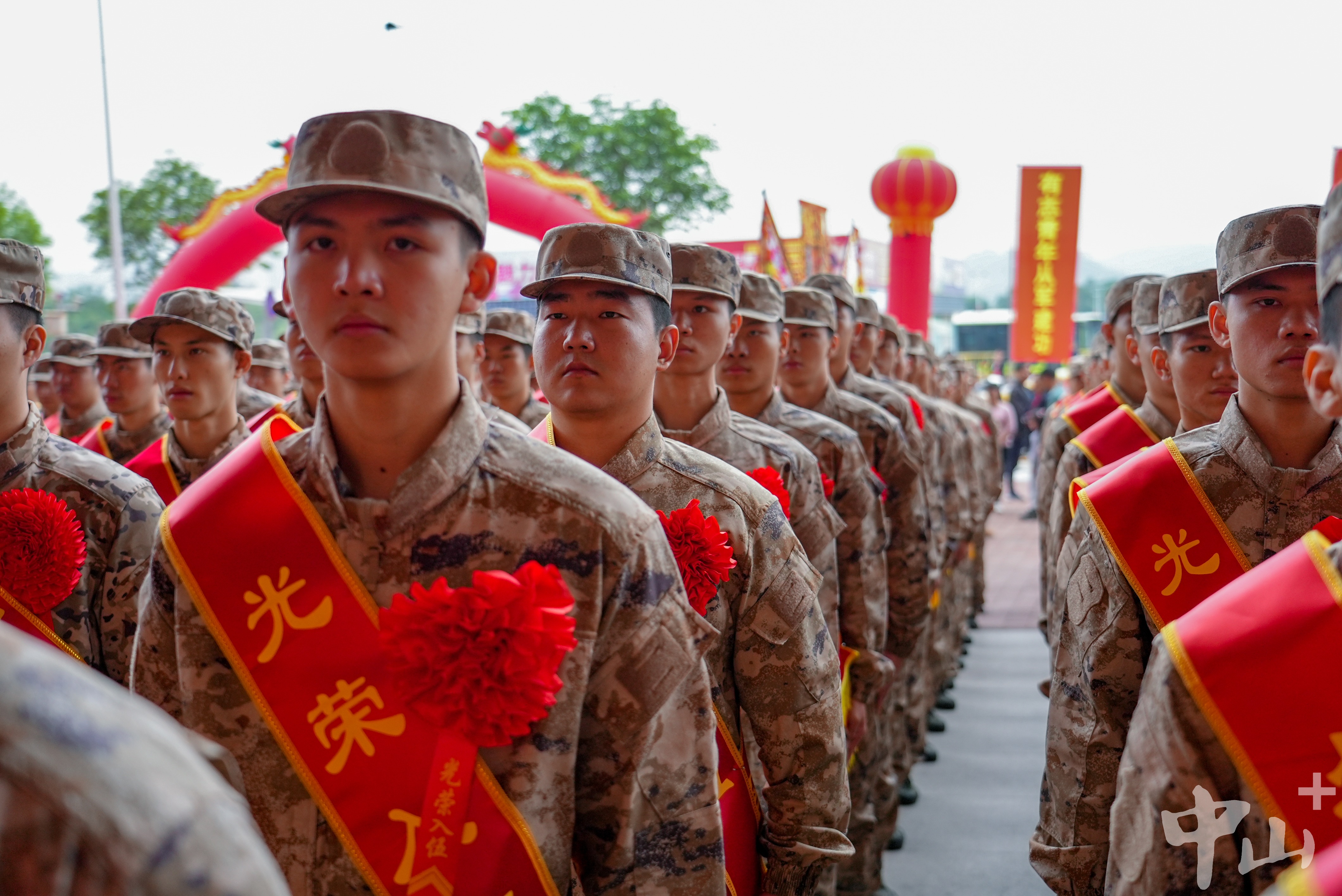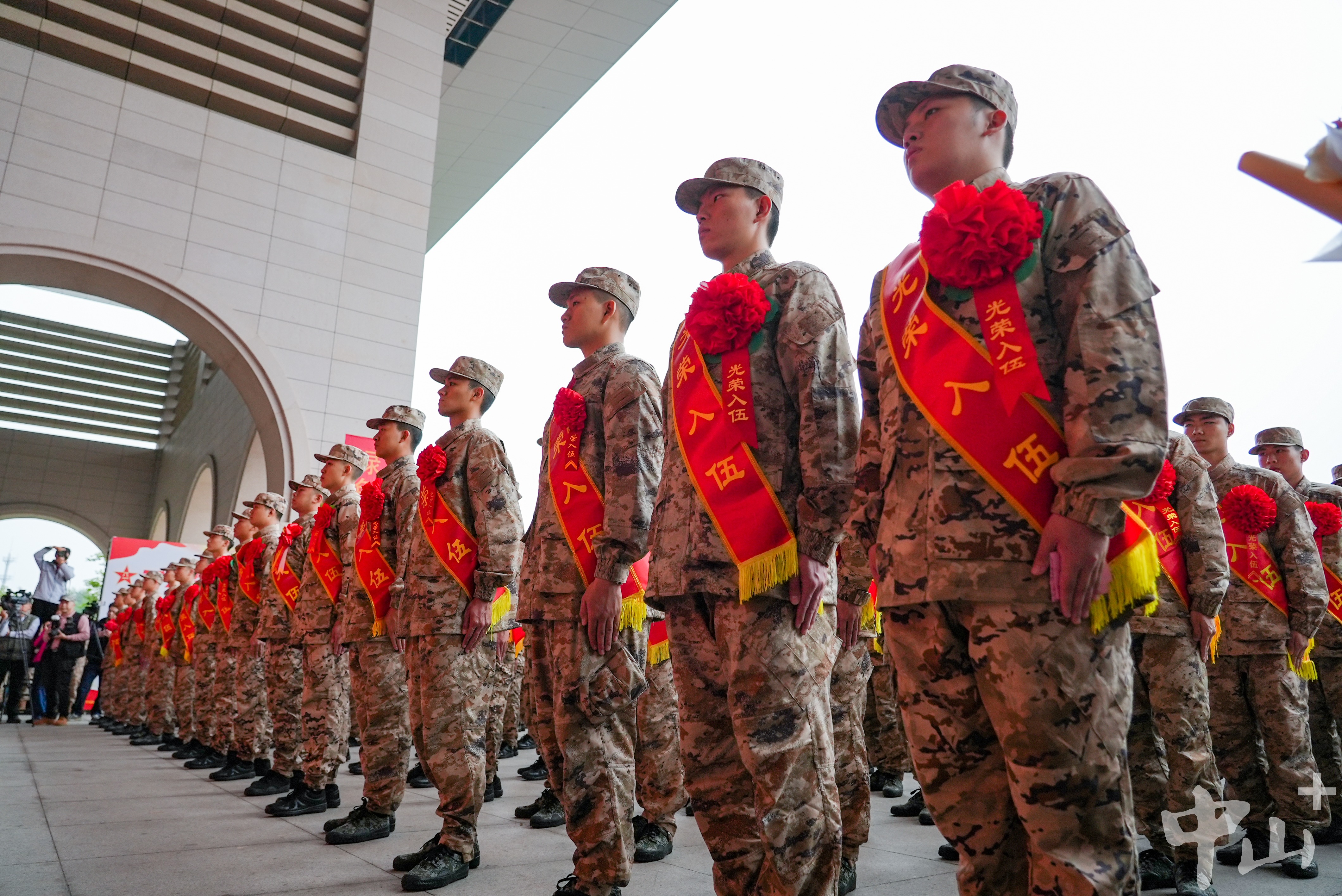 青春獻(xiàn)給國防,熱血報(bào)效祖國。 3月16日早上,中山市2024年上半年入伍新兵歡送大會(huì)在城軌中山站的進(jìn)站廣場(chǎng)舉行。300多名適齡青年經(jīng)過嚴(yán)格的體檢和政考,即將邁入軍營。 3月16日早上,中山市2024年上半年入伍新兵歡送大會(huì)在城軌中山站的進(jìn)站廣場(chǎng)舉行。記者 易承樂 攝
