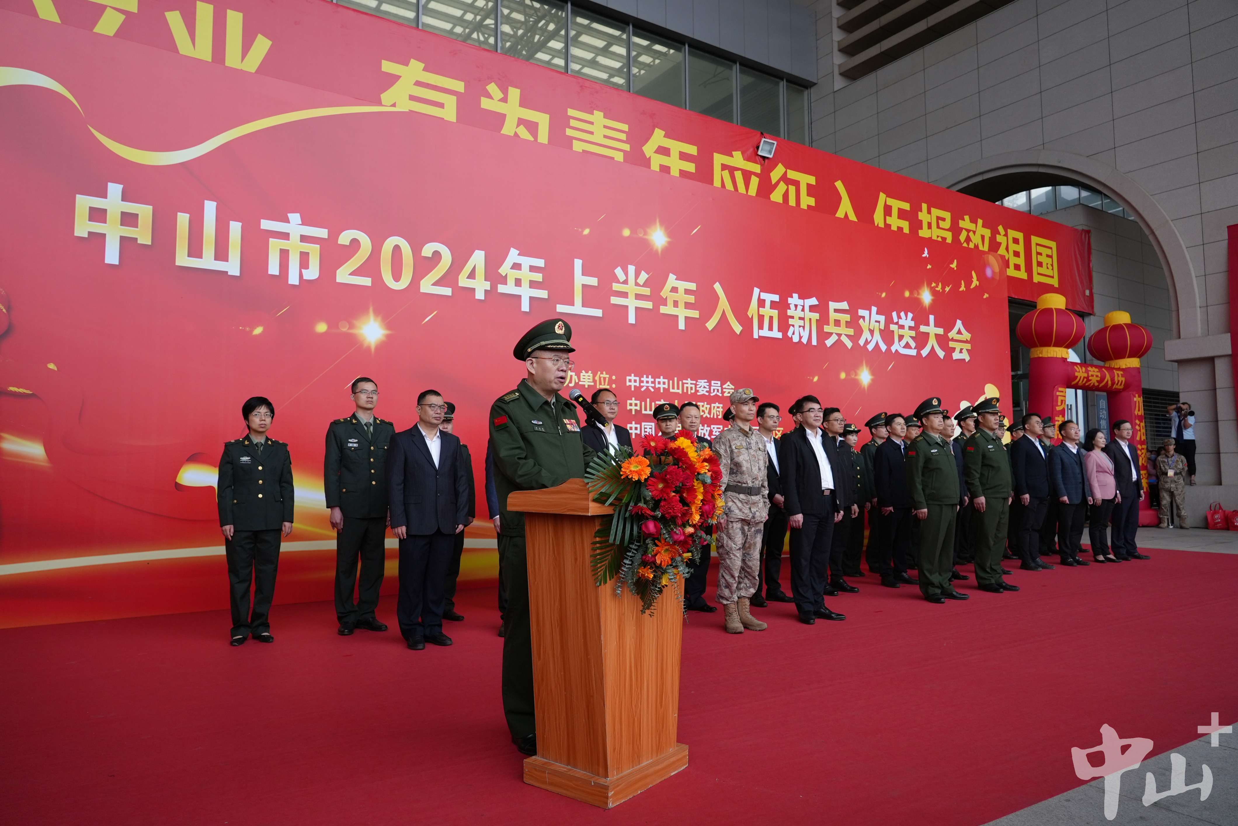 來自古鎮(zhèn)的新兵鄒卓航在新兵發(fā)言中表態(tài),要用實(shí)際行動(dòng)回報(bào)家人的期盼,為中山爭(zhēng)光添彩,為祖國的國防事業(yè)作出貢獻(xiàn)。 新兵余焱鵬的爸爸余如意是一名退役軍人,他在歡送大會(huì)上深情囑咐新兵們:“希望你們到部隊(duì)后安心服役,以優(yōu)異的成績(jī)向家鄉(xiāng)人民匯報(bào),對(duì)得起你們身上穿的這身軍裝。”  中山市征兵工作領(lǐng)導(dǎo)小組副組長、中山軍分區(qū)大校司令員李云濤致辭。記者 易承樂 攝