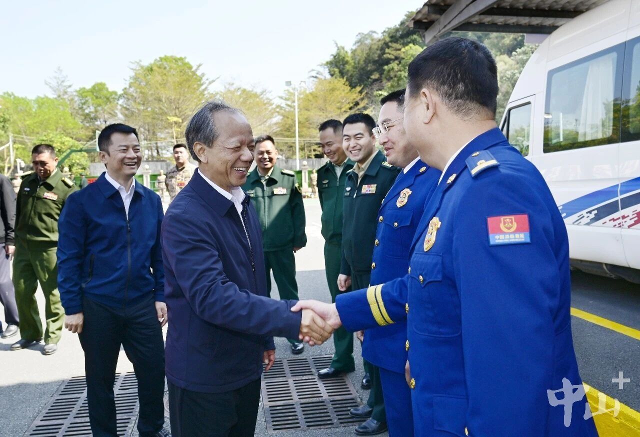 在中山海警局,郭文海、尹念紅觀摩裝備展示和日常訓練,聽取隊伍建設、執(zhí)法成果等情況匯報,充分肯定中山海警局在守護海域安全、維護社會穩(wěn)定、保障地方發(fā)展等方面作出的重要貢獻。