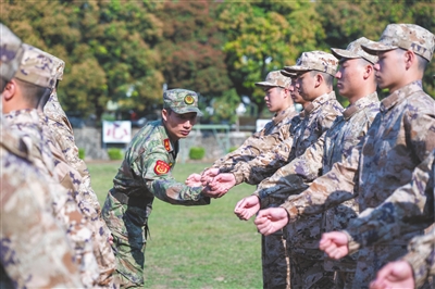 ▲隨著一次次的訓(xùn)練,新兵逐漸找到節(jié)奏。記者 張景天 攝