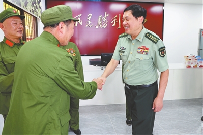 中山軍分區(qū)大校政治委員劉燦瑩慰問鎮(zhèn)街退役老兵、基干民兵。
