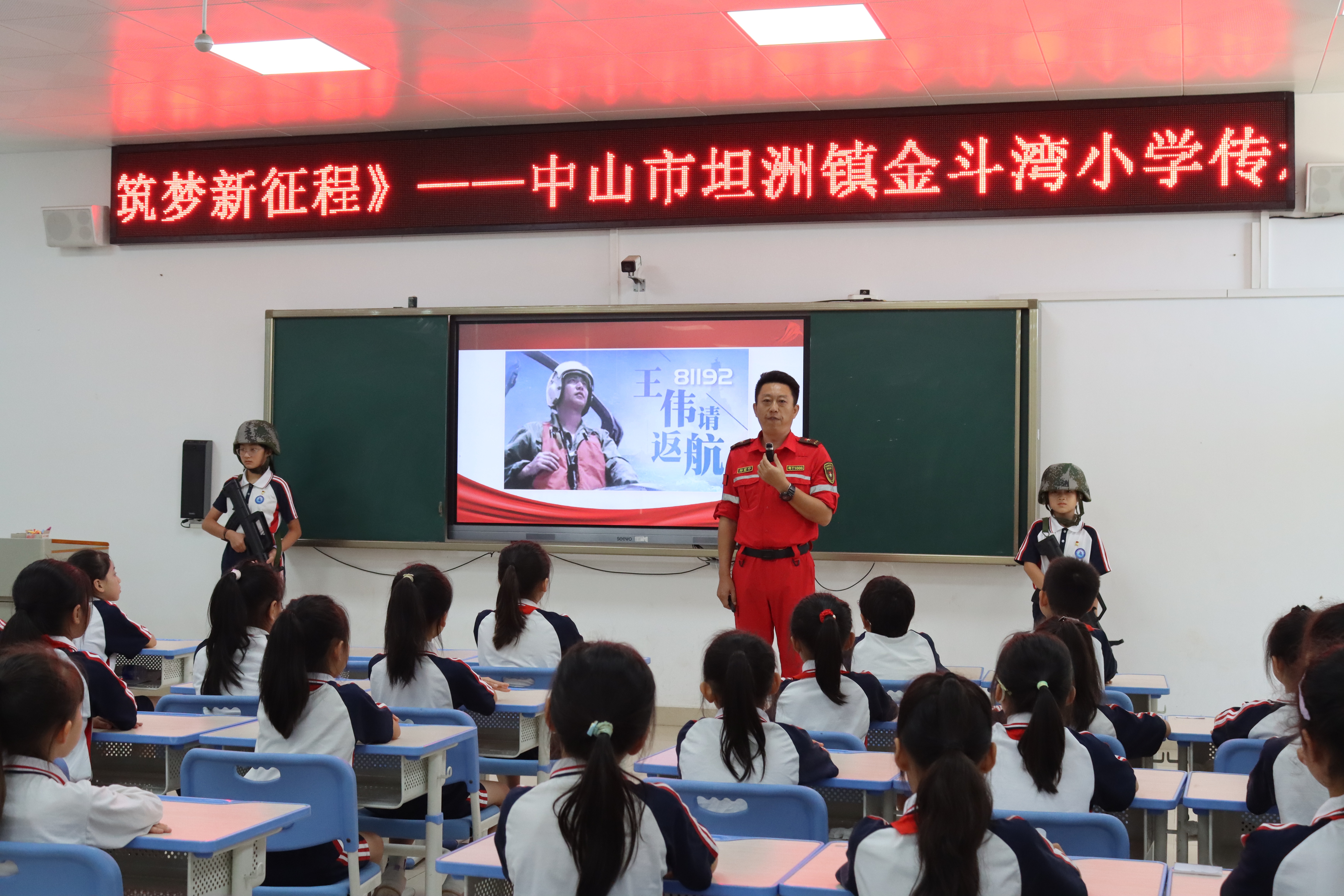 在坦洲鎮(zhèn)金斗灣小學(xué),坦洲鎮(zhèn)“老兵宣講團(tuán)”成員梁華與學(xué)生們展開(kāi)互動(dòng),通過(guò)提問(wèn)的方式引導(dǎo)學(xué)生銘記歷史、傳承紅色基因。
