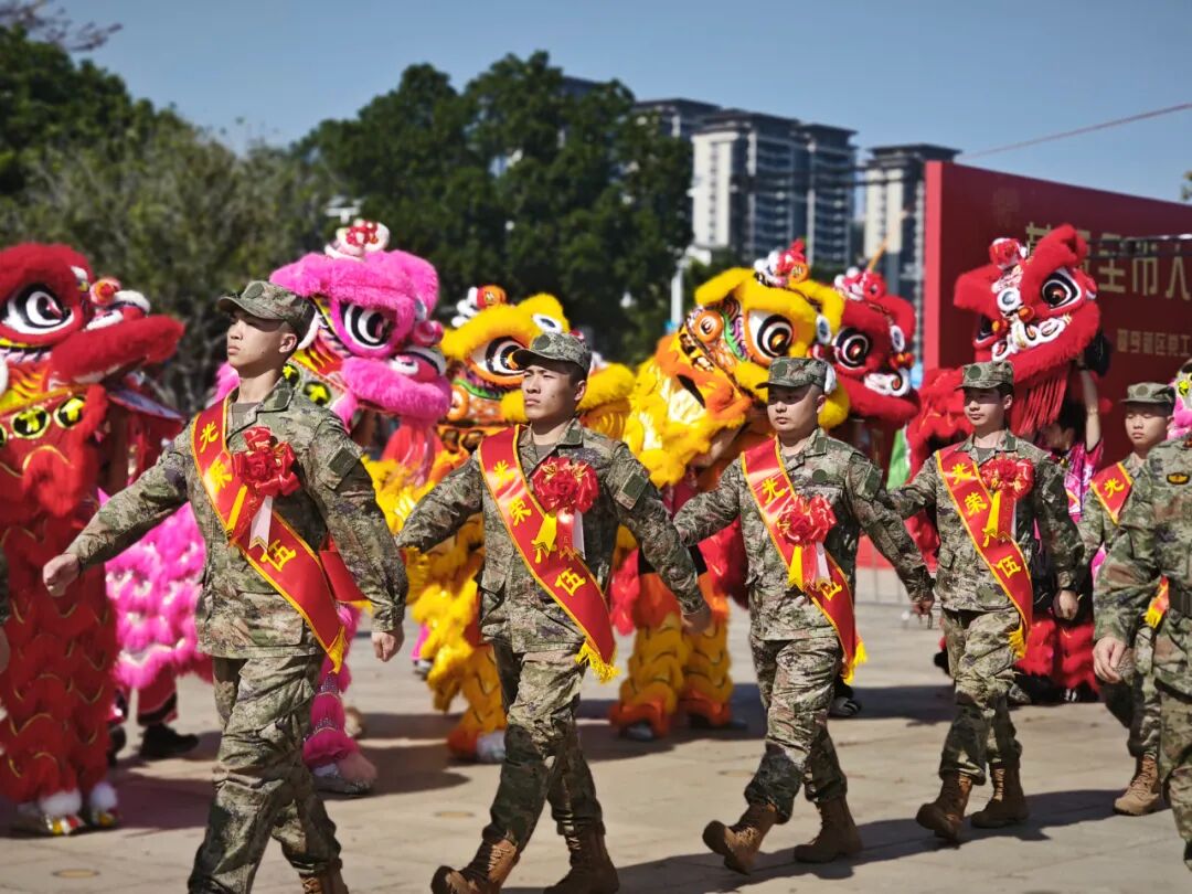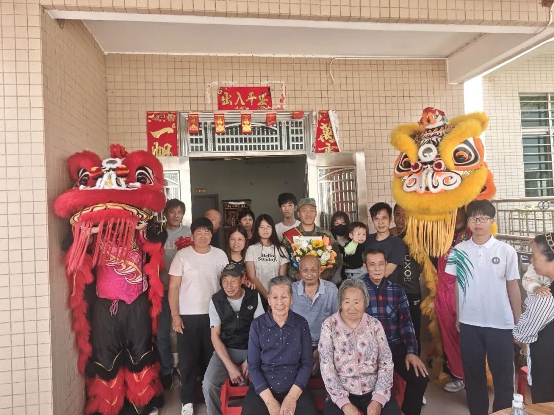 村內(nèi)特意邀請舞獅團(tuán)隊游村送兵,鑼鼓喧天,雄獅歡騰,父老鄉(xiāng)親們紛紛前來道賀,現(xiàn)場一片喜慶,滿是對吳啟杰的美好祝福,熱鬧的氛圍盡顯全村擁軍愛軍的濃厚情懷。