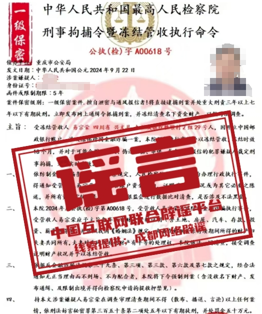 謠 言 檢察院從線上發(fā)來“刑事拘捕令”?