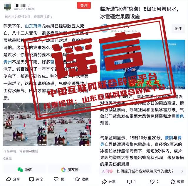 真相:7月11日,有個(gè)別自媒體賬號(hào)發(fā)布信息稱“昨天下午,山東菏澤龍卷風(fēng)已經(jīng)導(dǎo)致五人死亡,八十三人受傷”并配發(fā)相關(guān)圖片,引發(fā)關(guān)注。經(jīng)核實(shí)查證,菏澤市7月10日并未發(fā)生龍卷風(fēng),網(wǎng)傳消息系謠言。此外,另一自媒體賬號(hào)近日發(fā)布“臨沂遭‘冰彈’突襲!8級(jí)狂風(fēng)卷積水,冰雹砸爛果園設(shè)施”等信息。經(jīng)向臨沂市氣象部門核實(shí),近期臨沂市未發(fā)生大風(fēng)冰雹天氣,上述信息與實(shí)際情況不符,確為謠言。請(qǐng)廣大網(wǎng)民以氣象部門發(fā)布的信息為準(zhǔn),勿輕信、勿傳播非正規(guī)來源或未經(jīng)證實(shí)的信息。(來源:山東省互聯(lián)網(wǎng)違法和不良信息舉報(bào)中心)