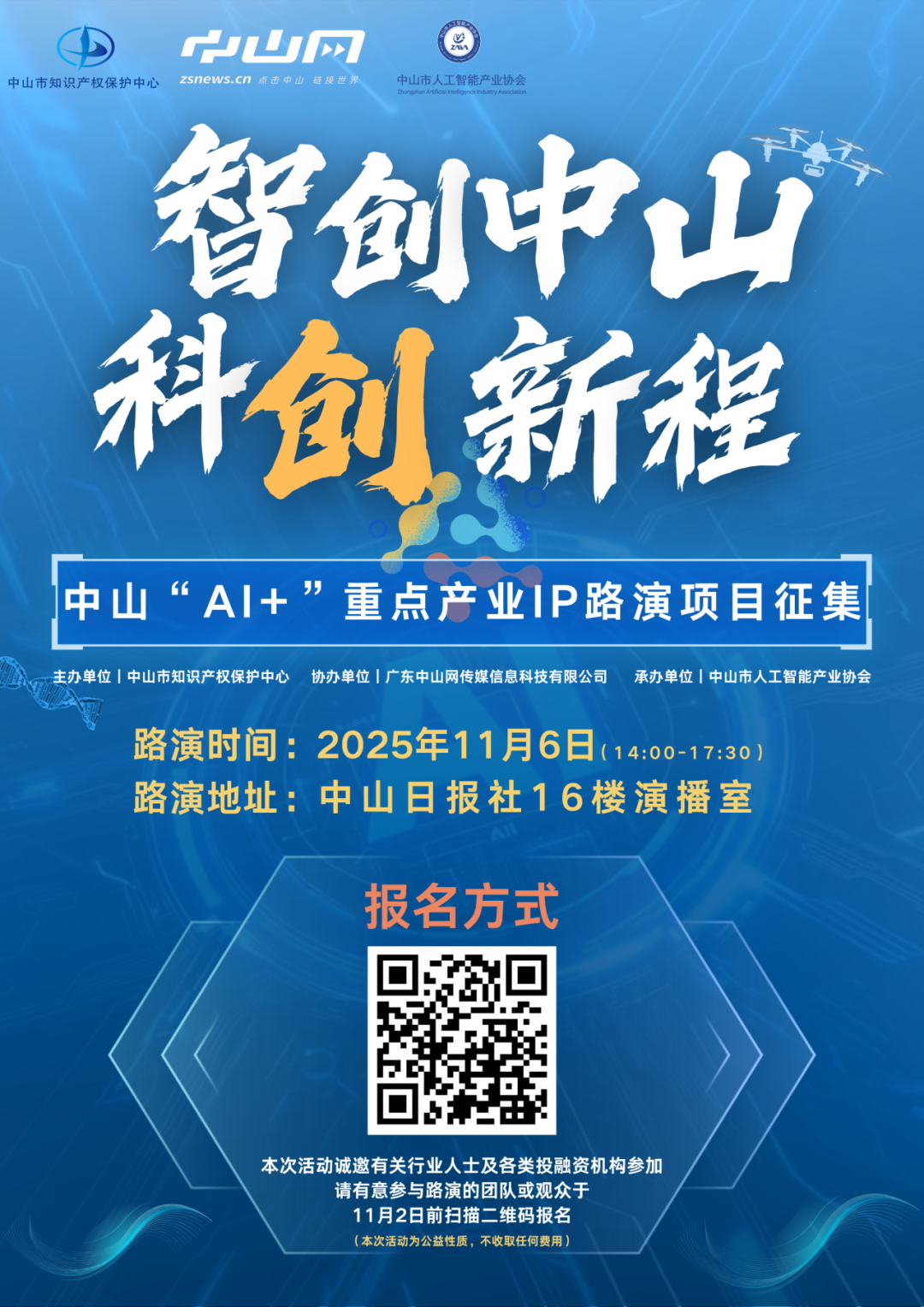中山市“AI+”重點(diǎn)產(chǎn)業(yè)IP路演項(xiàng)目征集中! 邀您一起挖掘“潛力股”