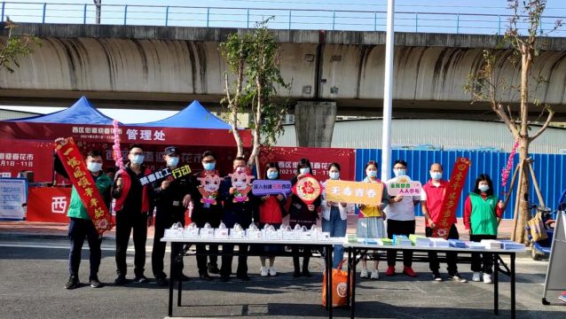 近日,西區(qū)街道禁毒辦組織公安分局等10個(gè)禁毒委成員單位在花市門口一旁舉行“禁毒達(dá)人之牛氣沖天快樂(lè)祝?!苯拘麄骰顒?dòng)。