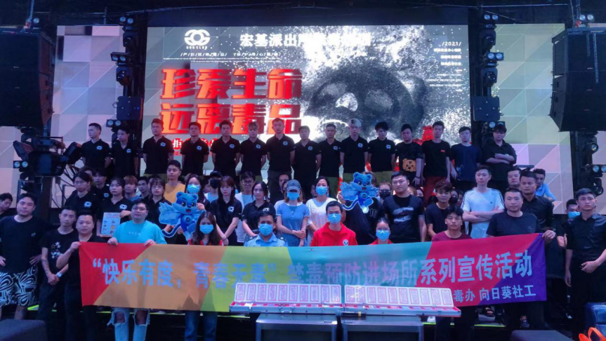 為進(jìn)一步加強(qiáng)公共娛樂場(chǎng)所禁毒宣傳力度,積極營(yíng)造良好的公共娛樂場(chǎng)所環(huán)境,提高娛樂場(chǎng)所服務(wù)人員禁毒意識(shí), 7月13日下午,石岐街道禁毒辦向日葵禁毒社工聯(lián)合宏基派出所開展“快樂有度,青春無‘毒’”禁毒預(yù)防進(jìn)場(chǎng)所系列宣傳活動(dòng),派出所民警組織GOG CLUB酒吧近200名酒吧工作人員積極參與。