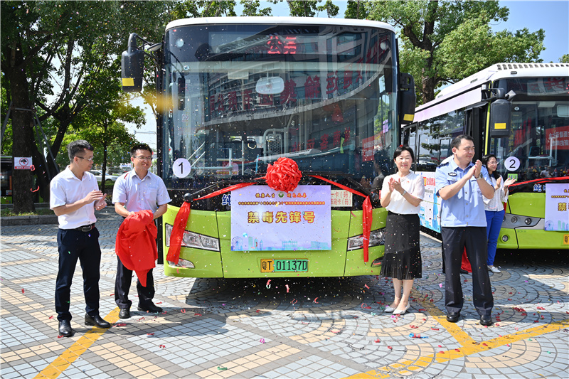 發(fā)車儀式上,中山市禁毒辦相關(guān)負(fù)責(zé)人介紹說,“全民禁毒、人人參與”是中山禁毒工作的特色,公交車具有流動(dòng)性強(qiáng)、覆蓋面廣、宣傳精準(zhǔn)等優(yōu)勢(shì),利用好公交車廂這一流動(dòng)的宣傳載體,讓中山公交車輛“化身”禁毒衛(wèi)士,帶領(lǐng)市民在乘車過程中識(shí)毒、防毒、拒毒,意義非凡。