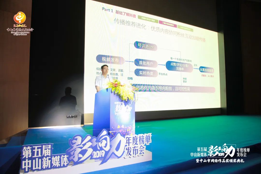 2019(第五屆)中山新媒體影響力年度榜單發(fā)布會現(xiàn)場,由人民網(wǎng)嘉賓單學(xué)剛發(fā)布并點(diǎn)評2019年度中山市政務(wù)微信、微博影響力排行榜單,活動(dòng)評出了中山十大最具影響力政務(wù)新媒體(微信)、十大鎮(zhèn)區(qū)新銳政務(wù)新媒體(微信)、年度中山十佳網(wǎng)絡(luò)短視頻、年度十佳最具行業(yè)影響力微信公眾號、年度中山新銳抖音號、年度十大優(yōu)秀新媒體創(chuàng)新案例、中山優(yōu)秀新媒體編輯、年度中山十大優(yōu)秀網(wǎng)絡(luò)直播案例、年度優(yōu)秀網(wǎng)絡(luò)主播等獎(jiǎng)項(xiàng),對2019年度中山市優(yōu)秀網(wǎng)絡(luò)作品和2019年度中山十大好網(wǎng)民進(jìn)行了頒獎(jiǎng),同時(shí)邀請今日頭條專家進(jìn)行了政務(wù)抖音創(chuàng)作課題分享。